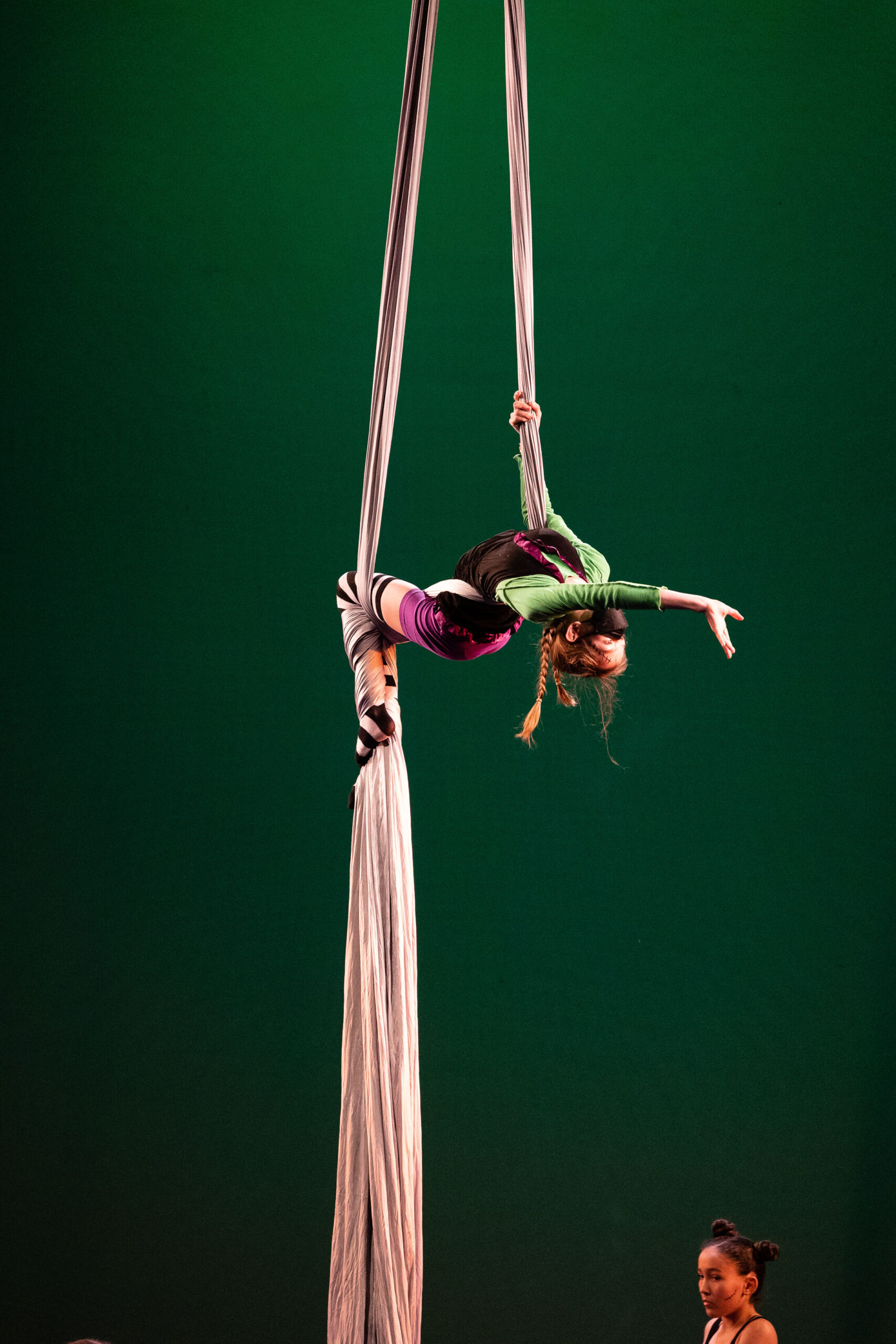 During the evaluation period, students will be asked to perform a series of skills in tumbling, aerial fabric and trapeze, rolling globe, tightwire, juggling, strength and flexibility. They will also be able to show their performance aptitude through playing theatre games, learning and performing a dance combination, and displaying a small sequence on the apparatus of their choice.