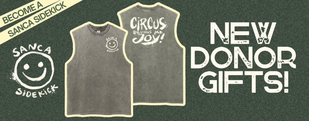 Join the SANCA family as a SANCA Sidekick with a monthly donation of $10 or more. Your steady support helps SANCA plan for the future, grow our programs, and make circus arts available to all ages and abilities.