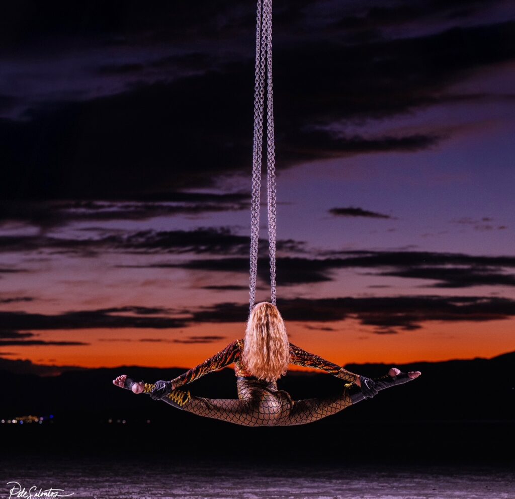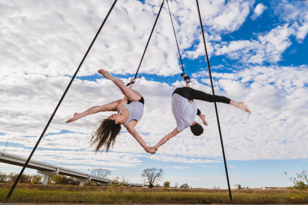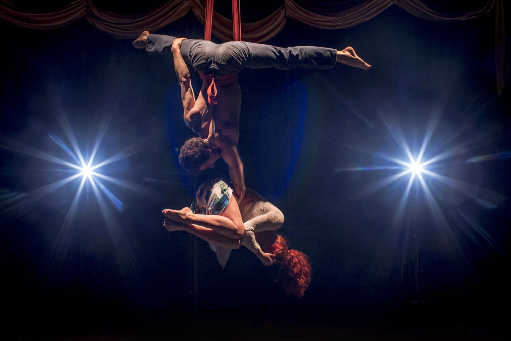 This workshop focuses on developing collaborative aerial performance skills, culminating in a performance 5-15 minutes long. Participants will explore group dynamics and creative composition through partner interactions on the floor and in the air, synchronization, mirroring, tableau, skills/transitions as motifs, and movements in cannon. The emphasis is on ensemble cohesion, while developing trusting relationships with one another and creating lasting collaborative bonds.